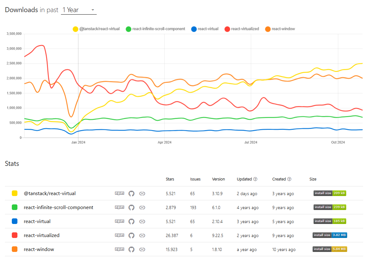 React 가상 스크롤 & 무한 스크롤 라이브러리 비교